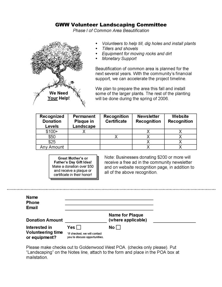 the GWW Landscape Committee will be initiating the first phase of